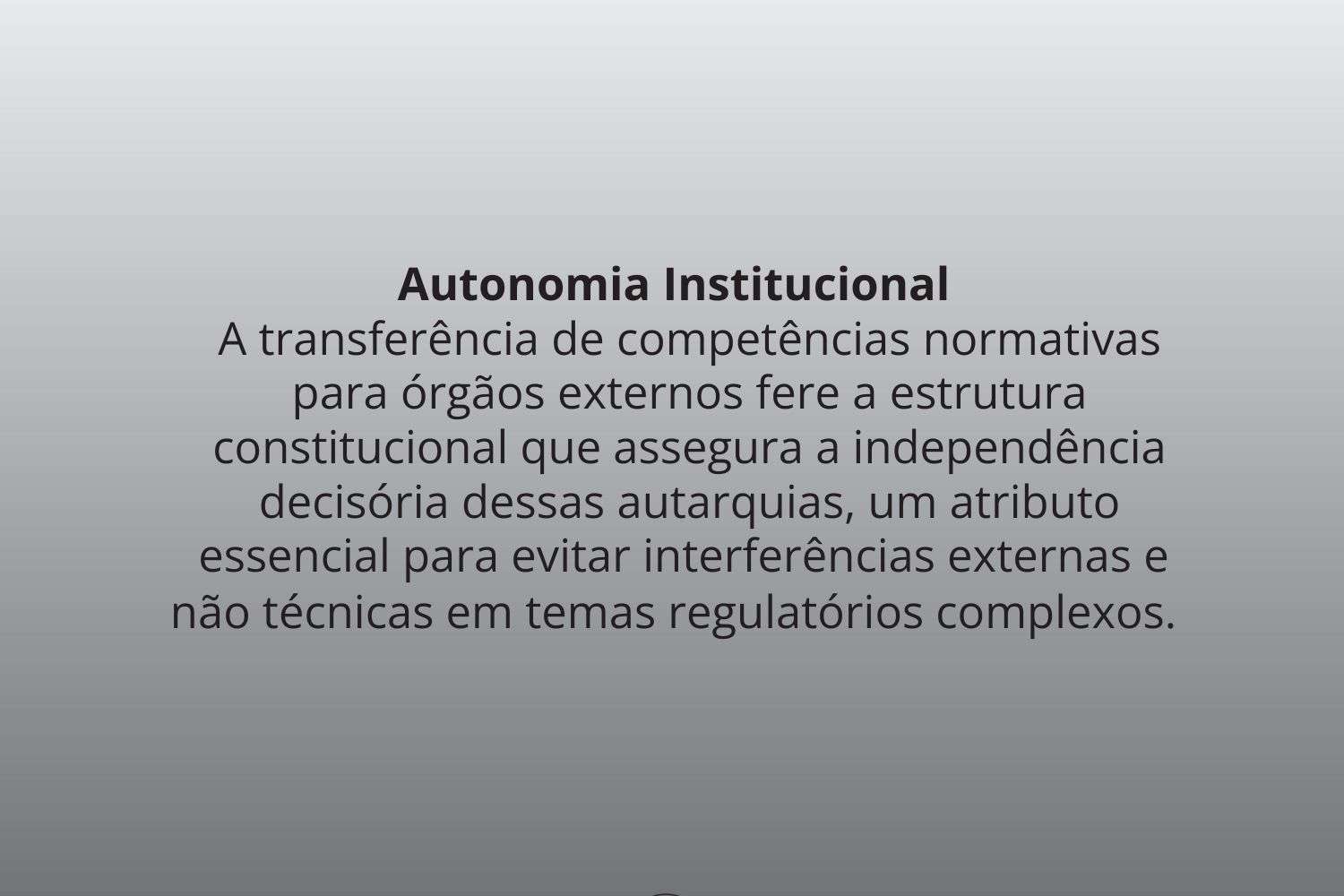Autonomia Institucional: A transferência de competências normativas para órgãos externos fere a estrutura constitucional que assegura a independência decisória dessas autarquias, um atributo essencial para evitar interferências externas e não técnicas em temas regulatórios complexos.