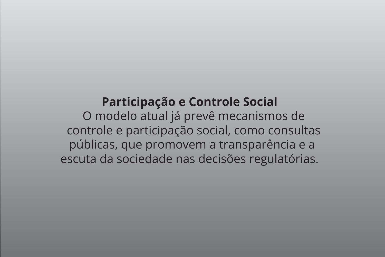 Participação e Controle Social: O modelo atual já prevê mecanismos de controle e participação social, como consultas públicas, que promovem a transparência e a escuta da sociedade nas decisões regulatórias.