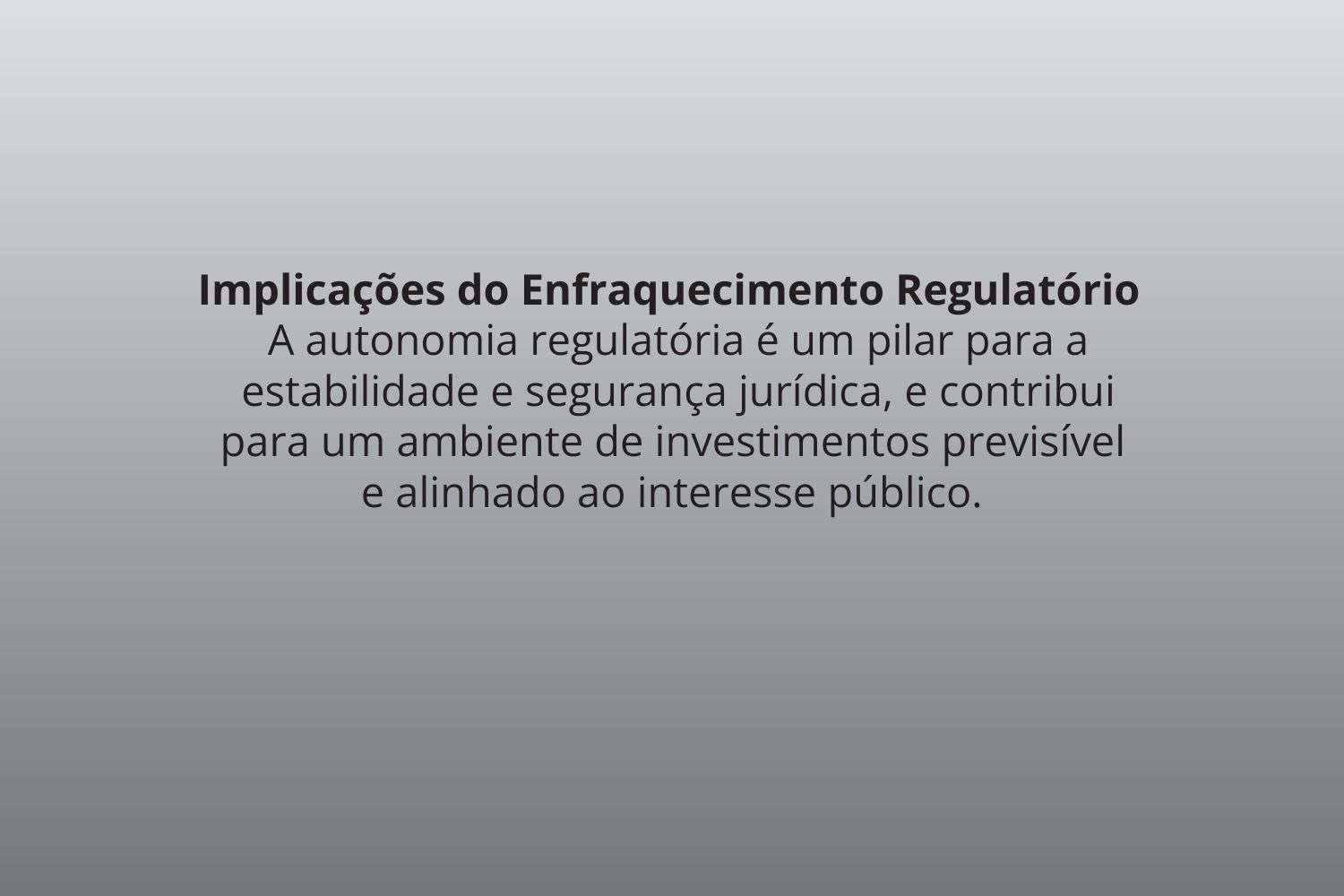 Implicações do Enfraquecimento Regulatório: A autonomia regulatória é um pilar para a estabilidade e segurança jurídica, e contribui para um ambiente de investimentos previsível e alinhado ao interesse público.