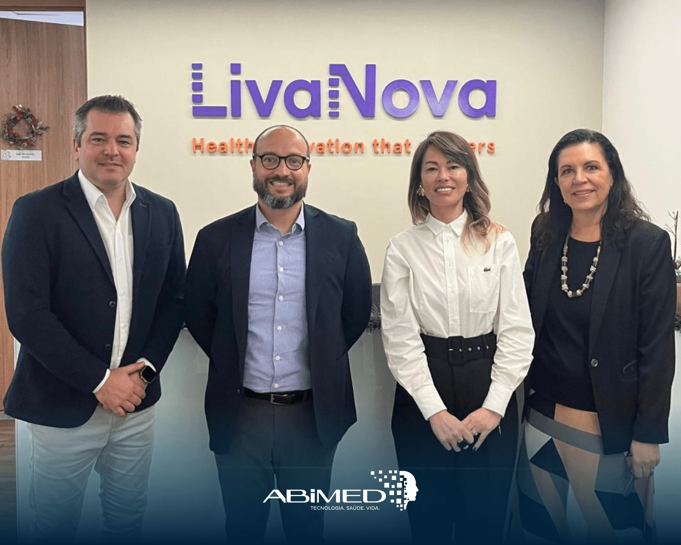 Ao lado de Kelton Caires, Gerente de Vendas da Linha de Cardiologia da LivaNova, e Paula Cherin, Gerente de RIG, a Associação foi representada por Carina Miyamoto, Gerente de Assuntos Legais e Compliance da ABIMED, e por Benny Spiewak, sócio da SPLAW e especialista em direito público.