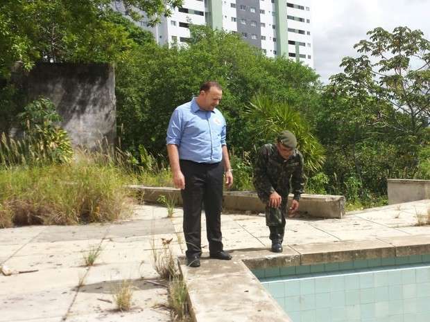 O ministro participou de visitas a três imóveis abandonados, no bairro do Farol, que oferecem risco de proliferação do mosquito. O primeiro local foi um terreno ao lado de um supermercado. Lá foram encontradas garrafas pet com água.