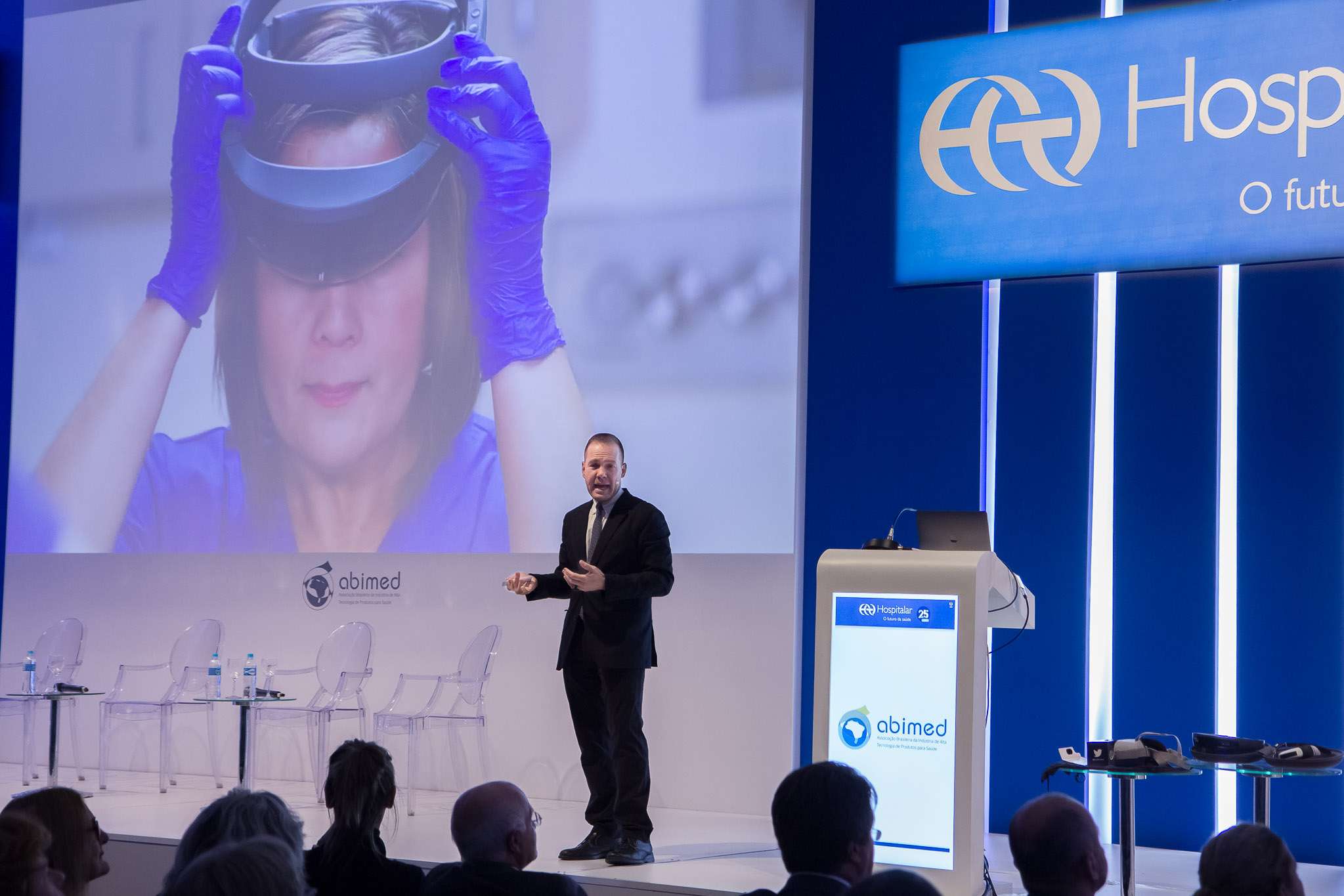 Mencionou ainda uma cirurgia realizada em Londres com equipamento de Realidade Aumentada, que foi acompanhada por 55 mil estudantes e profissionais de saúde do mundo todo.