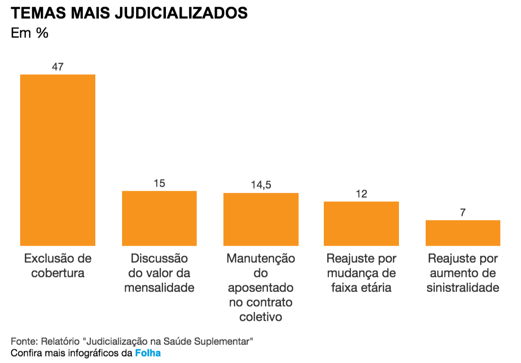Um estudo da USP divulgada no dia 18 de janeiro apontou que 92,4% das decisões judiciais contra planos de saúde da cidade favoreceram o paciente na cidade de São Paulo, 15% das demandas judiciais são sobre o valor da mensalidade. Cerca de 60% dos paulistanos têm em planos de saúde -desses, 5,2 milhões têm planos coletivos, que representam 83% do mercado.